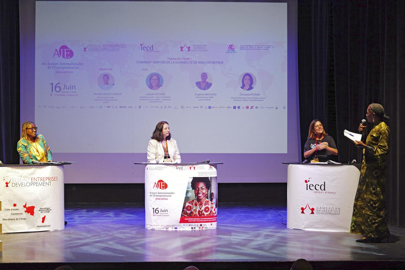 Nous avons également profité de ce déplacement pour participer aux Assises internationales de l’entrepreneuriat, aux côtés de Christelle P., Directrice de Business France Afrique Centrale, et de Eugénie A., Cheffe d’Antenne de l’APME – région Littoral (Agence de promotion des PME).